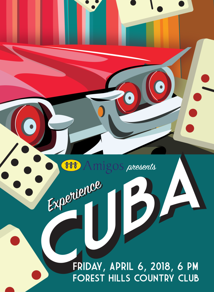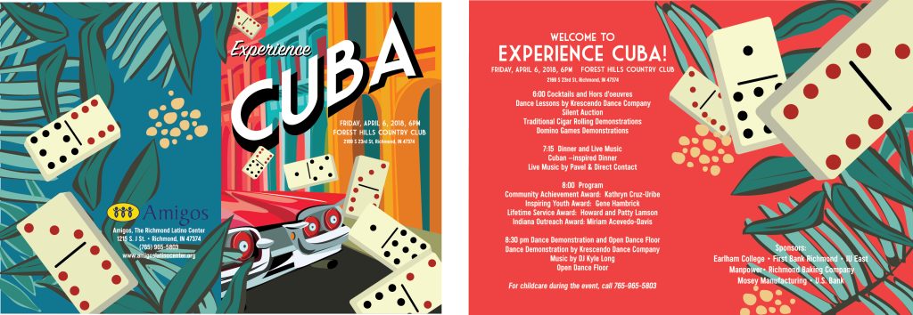 Experience Cuba – Theme Artwork and Marketing Materials for Amigos Richmond Latino Center Fundraiser: Inspired by the rich visual heritage of old Cuba, this artwork draws from iconic photographs and cultural touchstones such as vintage cars, vibrant domino games, and the lively spirit of the island. Influenced by the bold, nostalgic style of 1930s and 40s tourism posters, the piece celebrates the color, energy, and warmth of Cuban culture. Created as the visual centerpiece for Amigos’ annual fundraiser, this theme artwork was featured throughout the event’s marketing materials, setting the tone for an unforgettable celebration.
